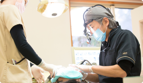 患者さんの毎日の歯磨きと歯科医院での定期検診によって、一生ご自分で食事ができるようお口の環境を整えていきます。