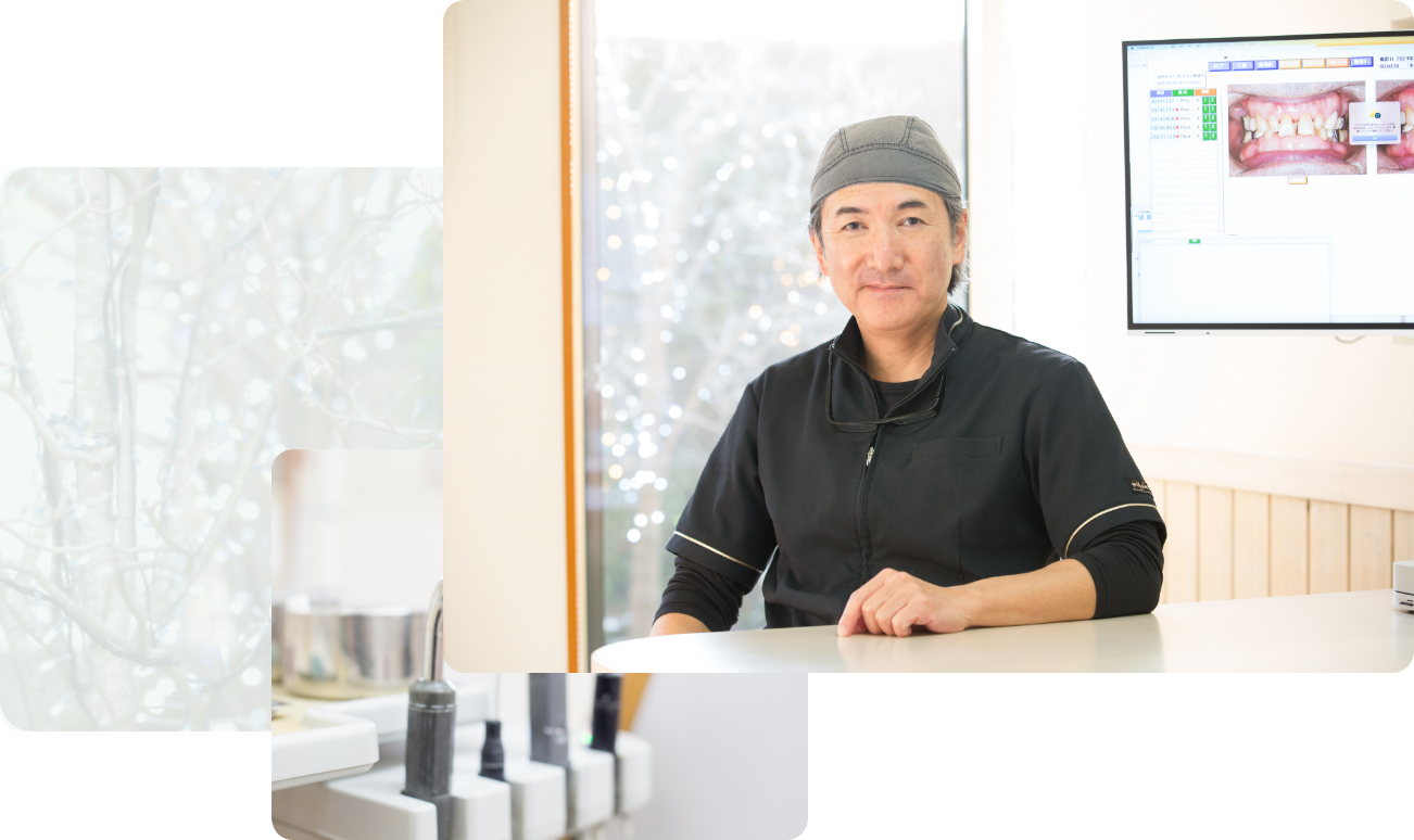 ABOUT 私たちが住んでいるこの地球の各国で、新しい歯の治療技術・器械・器具が、次々とめざましく開発されています。学会や海外研修等で、それらを可能な限り取り入れ、皆様の豊かな生活を実現するために、世界基準をめざした診療を提供いたします。気の許せる人達との楽しい団らん、食べたい物を好きなだけ食べることのできる幸せ、皆様の豊かな生活の実現に努めます。 院長 佐藤勝史 当院紹介 外観 受付 待合室 カウンセリングルーム 診療室 診療室 診療室 診療室 X線室