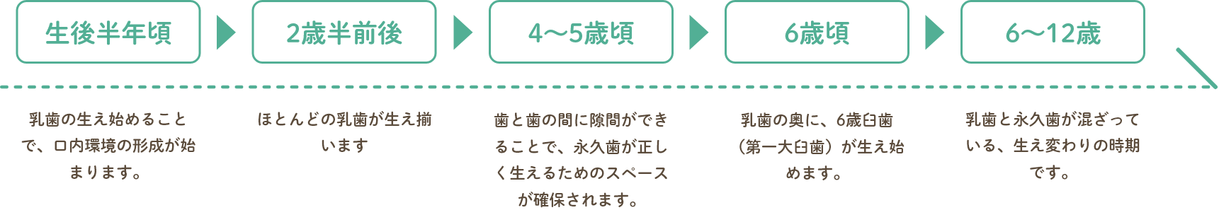 それぞれのお口の状況や発育に合わせた適切な治療や口腔ケアが必要です。