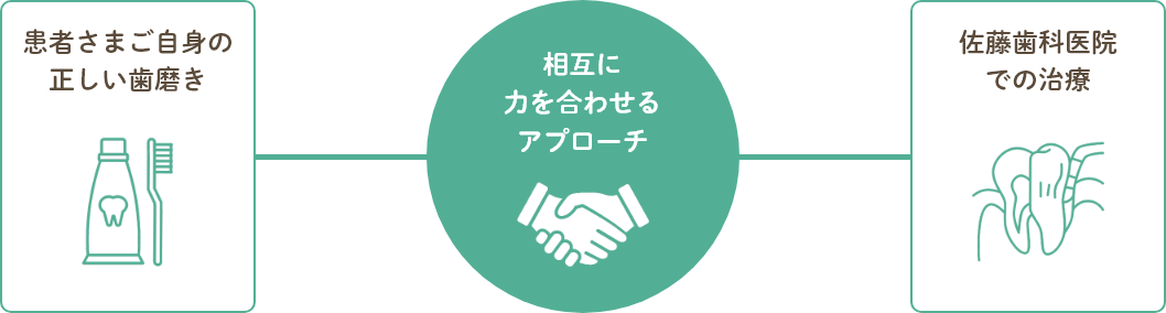 患者さんの毎日の歯磨きと歯科医院での定期検診によって、一生ご自分で食事ができるようお口の環境を整えていきます。